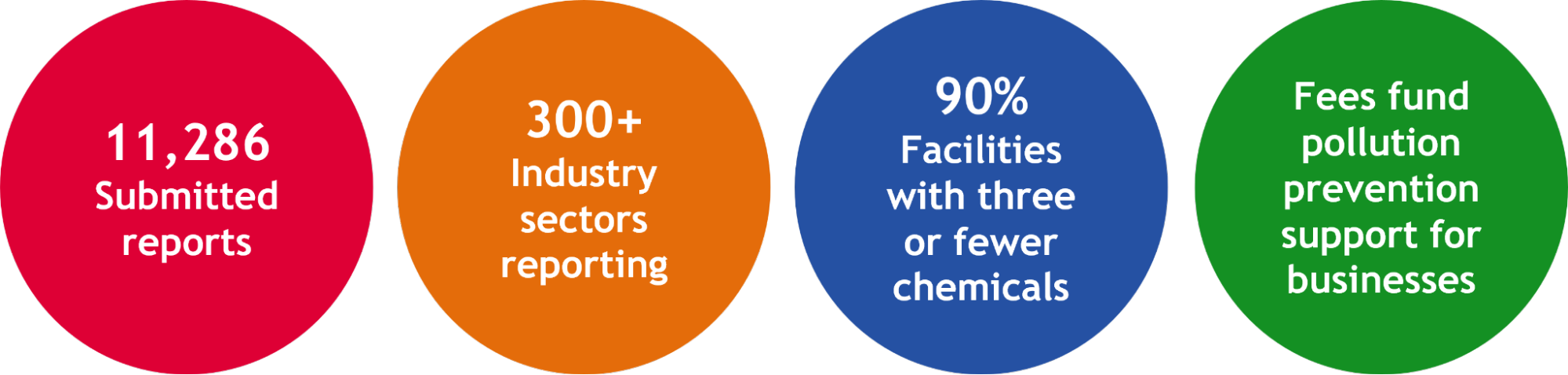 Facilities submit Tier II reports annually by March 1st of each year for chemicals stored in the previous year. For Reporting Year (RY) 2024, Colorado received Tier II reports from 11,286 facilities. These facilities represent a wide range of industries, including common businesses like gas stations, hardware and retail stores, and concrete/asphalt plants. In total, Tier II reports were submitted from over 300 industry sectors. Although many facilities file Tier II reports, the overwhelming majority (90%) of facilities store three or fewer chemicals on-site. These chemicals can include substances seen every day, such as gasoline, propane, cleaning solvents, and diesel. Fees collected from Tier II reporting fund pollution prevention support for businesses across the state.