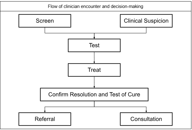 Collecting a sexual history is critical to elicit symptoms of STIs, identify individuals at elevated risk of STIs, as well as to guide specific testing practices (e.g. pharyngeal and rectal swabs).