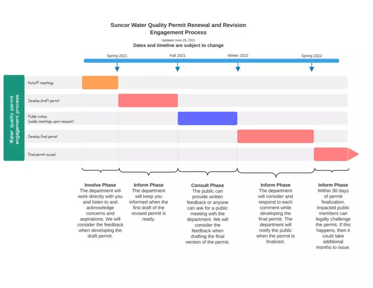 CDPHE reviews spills associated with an entity and we consider that data and information when renewing a water quality permit. CDPHE created a Suncor spill report summary that highlights the spills most directly-related to water quality events. This summary does not include all the spills that come from Suncor.